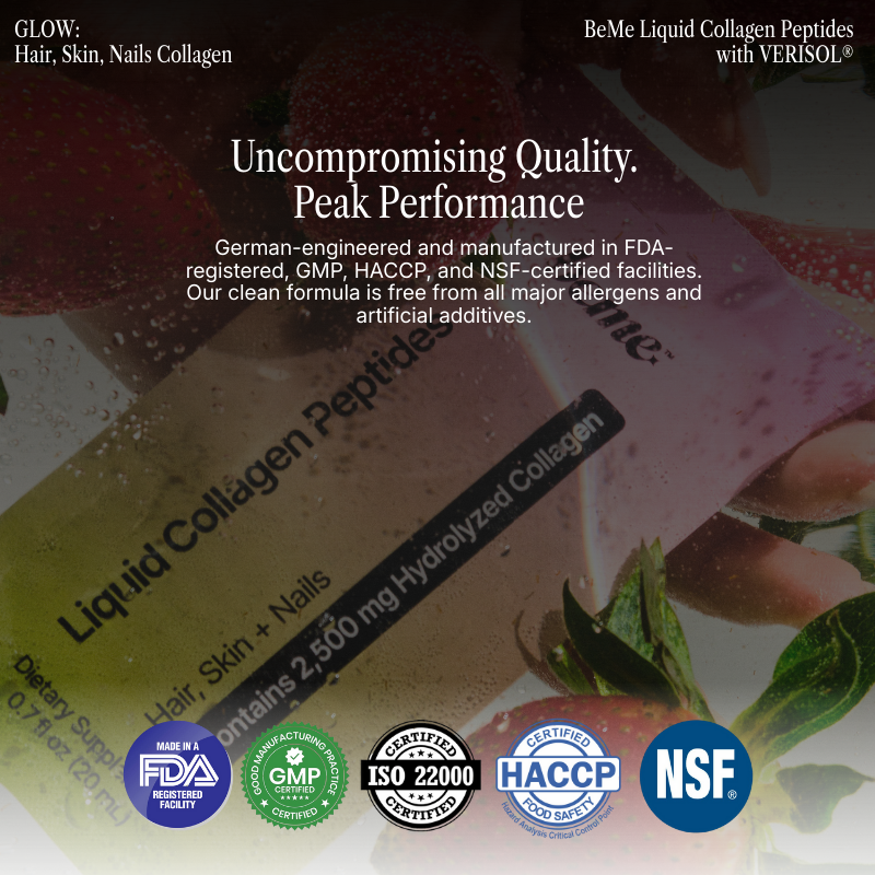 The BeMe Difference: Active lifestyles accelerate aging through oxidative stress. We combined the clinical 2.5g VERISOL® dose with a powerful Antioxidant Shield (CoQ10 + Vit C & E) to protect your cells while rebuilding collagen. VERISOL® is backed by clinical trials with nearly 500 participants.